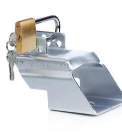 Aisalukko, jota voi käyttää myös perävaunun ollessa kytkettynä ajoneuvoon.Riippulukko avaimilla paketin mukana.
