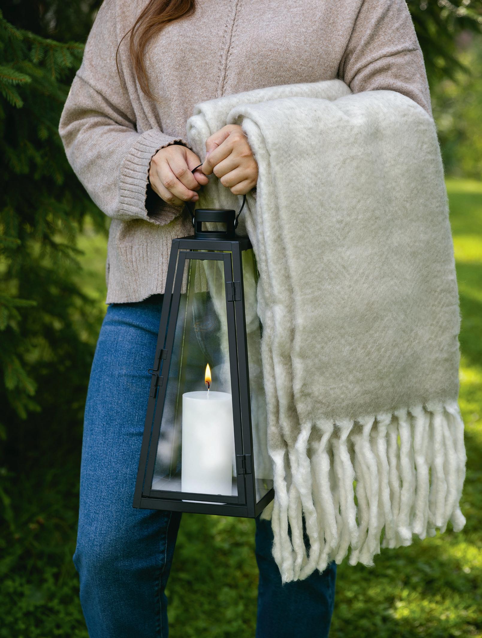 Syksyn lempeimmät lämmittäjät ja tunnelman luojat niin sisällä kuin puutarhassa ovat suloisen pehmoiset torkkupeitot ja kaunista valoaan antavat lyhdyt.