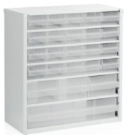 Järjestä pientavarat kätevästi eri kokoisiin lokeroihin. 24-lokeroinen miljoonalaatikko tyylikkään valkoisena. Tukeva metallirunko on pitkäikäinen. Soveltuu erinomaisesti mm. ompelutarvikkeiden järjestämiseen, mutta myös varasto ja autotallikäyttöön.