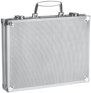 L004: Vedettävässä työkalulaukussa on 3-portainen teleskooppikahva ja pyörät. Yhteensä 22 taskua. Kansiosa avautuu kokonaan vetoketjujen ansiosta. Päädyssä vetoketjullinen tasku ja käyntikorttikotelo.