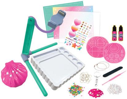Gemex Deluxe Video Studiolla teet valloittavia avaimenperiä, rannekoruja ja sormuksia geelistä. Ripottele muottiin helmiä, konfetteja ja glitteriä. Täytä muotti geelillä, aseta muotti UV-valon alle ja 3:ssa minuutissa koru on valmis! Ikäsuositus 5+.