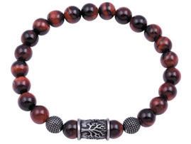 Northern Viking Jewelry Vegvisir- Tai Tiger Eye Tree Of Life -rannekoru Valmistettu kivihelmistä, koristeena teräshela. Rannekorun sisällä on kuminauha.