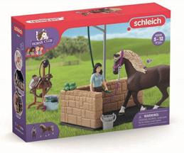 Horse Clubin Emily ja Luna Täysin liikultetava tyttöhahmo Emily asettaa satulan ja suitset satulatelineelle, kiinnittää sievän holsteininhevostamma Lunan riimusta pesupaikalle ja puhdistaa turkin puhdistustarvikelaatikon sualla ja harjalla. Ikäsuositus 5+ vuotta.