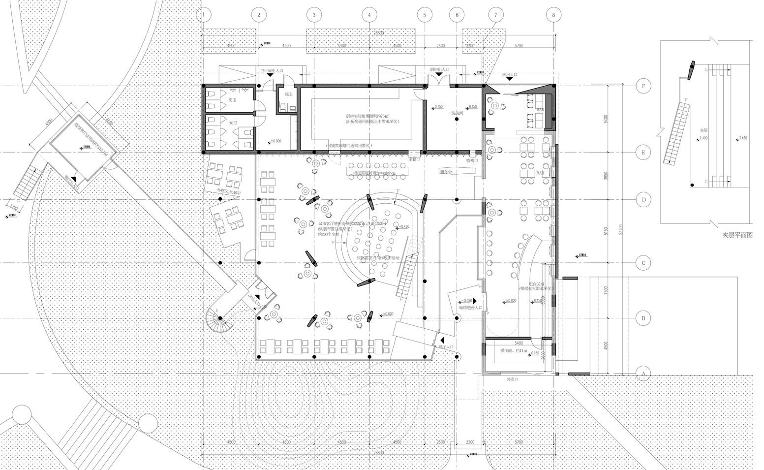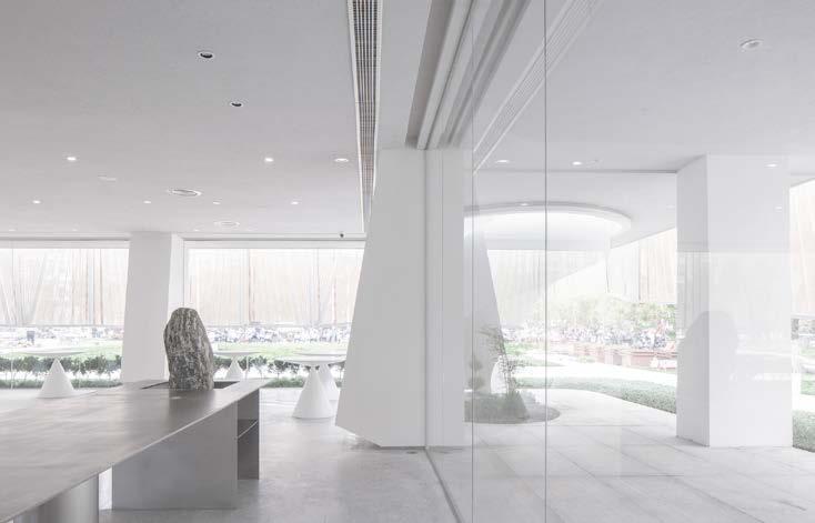 The “Living room” here can be considered as a symbol of experience, a place where daily life unfolds. The building is mainly occupied by a cafe, holding various exhibitions and activities all year round. It welcomes different people to visit here and encounter each other. We hope that it remains urban public quality on an intimate spatial scale, becoming a public space with a humanistic spirit. Being a place that cannot be simply defined, it requires flexible building layouts. Different functions reside in different volumes, juxtaposing under a layer of floating light yarn independently, neither friendly nor aloof. Light sheds in through the gap between them.