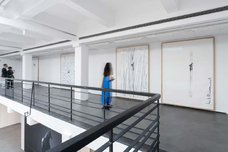 The exhibition starts from a newly-produced series of large charcoal drawings. Entitled Air, the series features human body figures in various postures floating in the void of paper, capturing the various moments of falling.