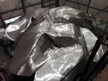 The second floor presents the artist’s representative large-scale works, including “Cocorico,” an ongoing painting series began in 2016. The artist flattens and reassembles metal cans discarded in the ocean, landfills, and streets to form specific colors and patterns.