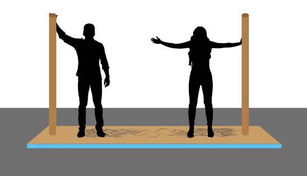 The physics concept of a human circuit allows participants to safely connect the “trees” with bioelectricity, using nothing more than touch, just like the mycelium.