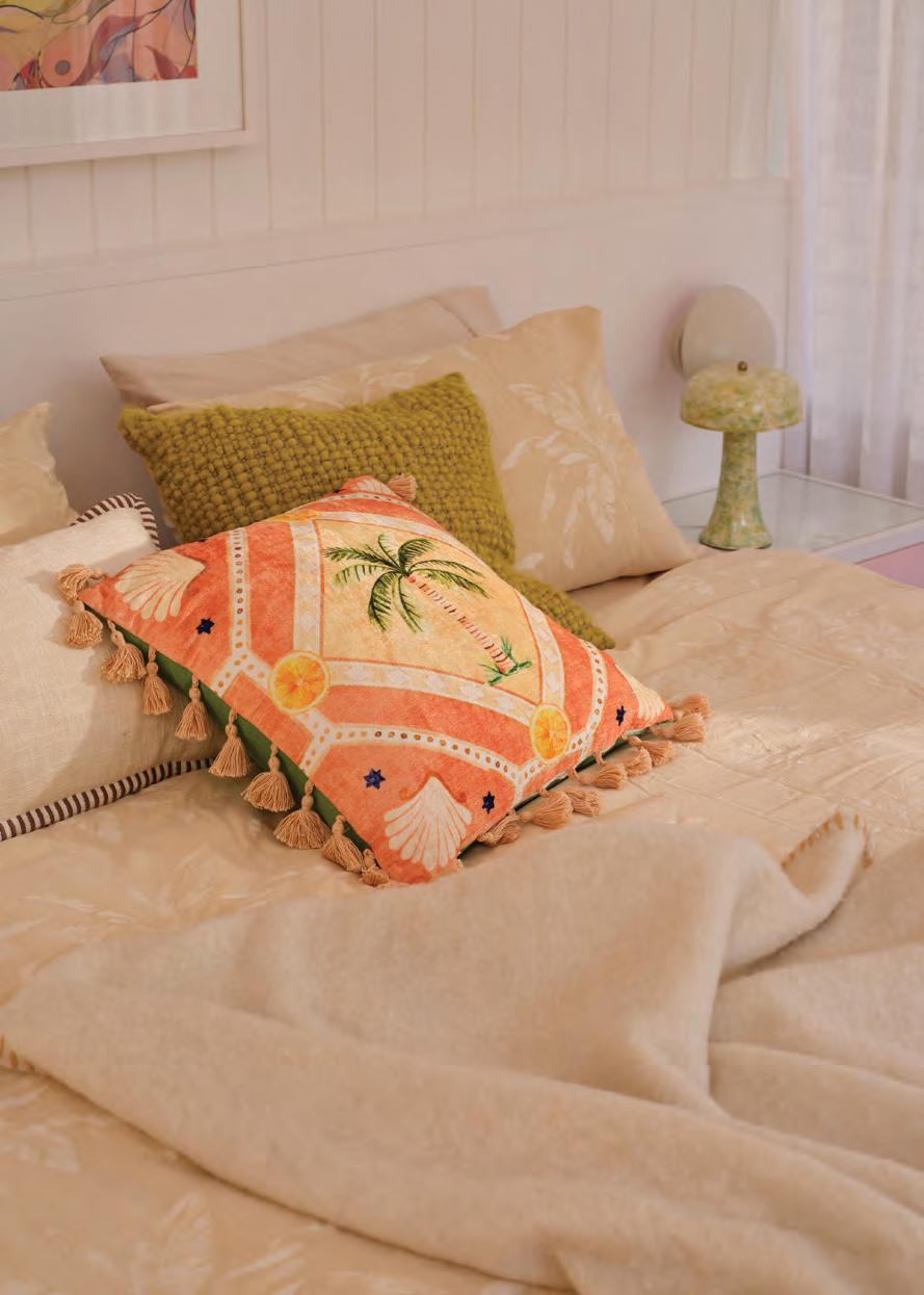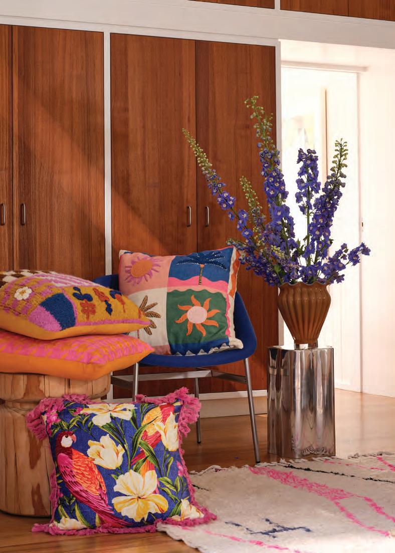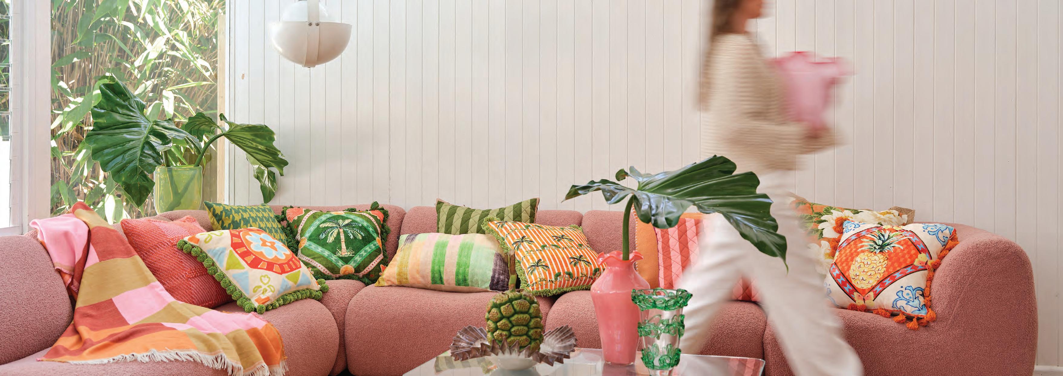 Combine bold checkered patterns with vibrant splashes of colour to invite a sense of play into your space. This edition’s cushions embody the art of unwinding—letting summer’s warmth soften the everyday and shaping environments that feel as uplifting as a true getaway.