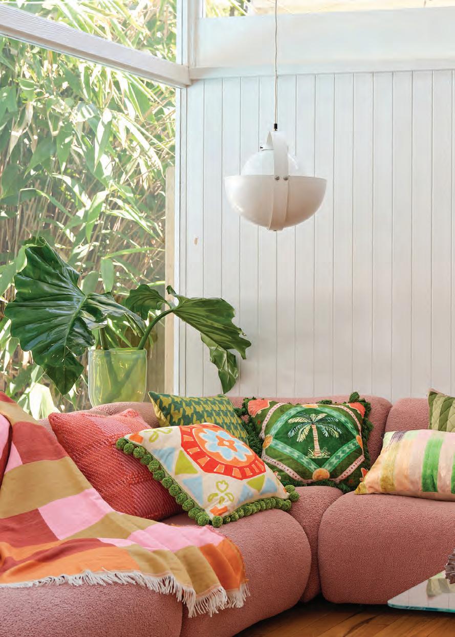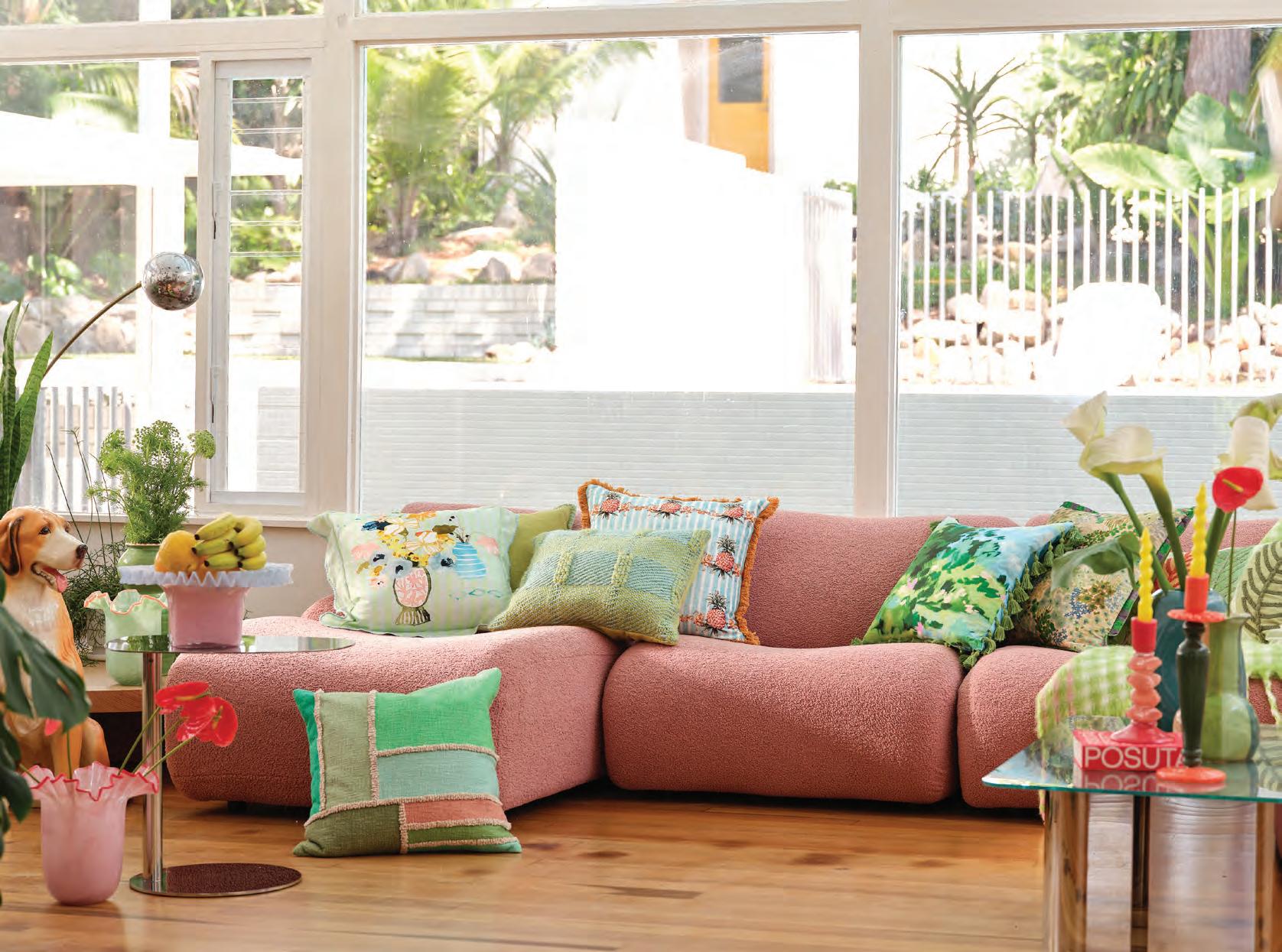 Texture becomes the hero, transforming every corner into a sensory escape. Chunky weaves, boucle finishes and dimensional embroidery add movement and personality, while soft-touch fabrics invite you to sink in and stay awhile. It’s a celebration of contrast — smooth against textured, structured against relaxed — creating a vibrant retreat that feels as joyful as it is inviting.