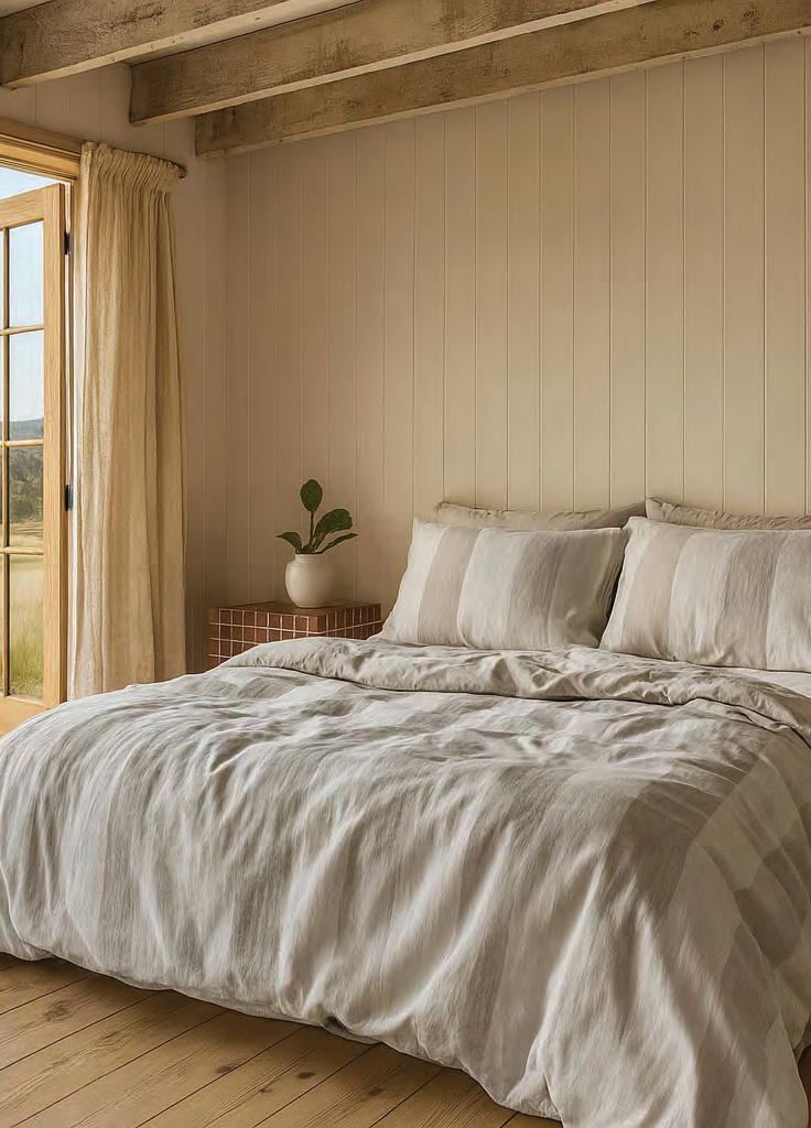 Washed cottons, breathable linens and delicately quilted finishes create an inviting, lived-in feel that’s equal parts relaxed and refined.