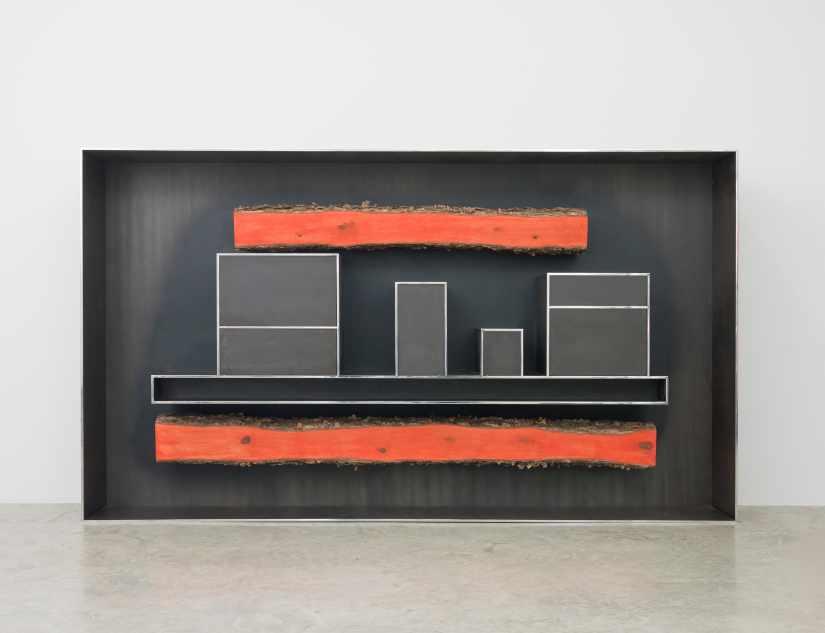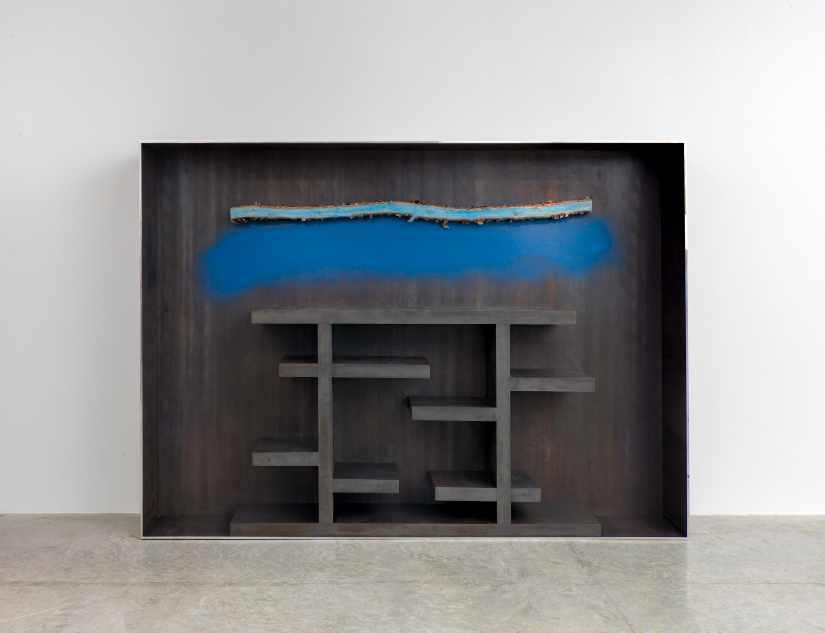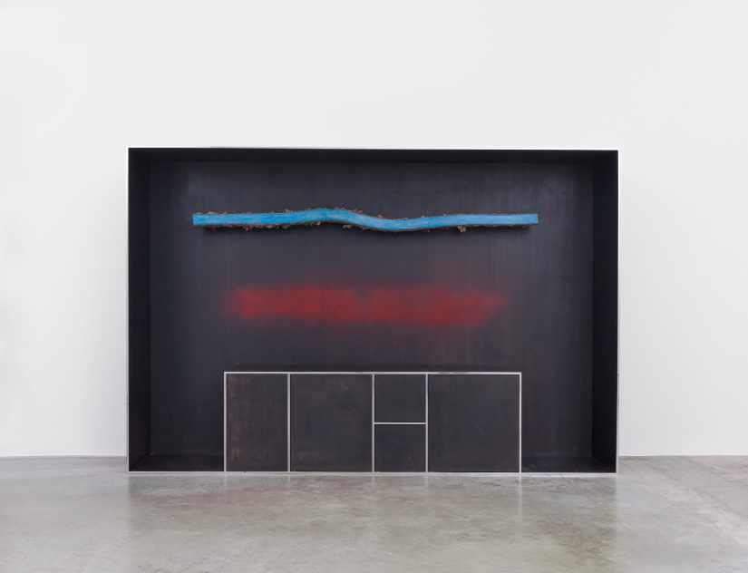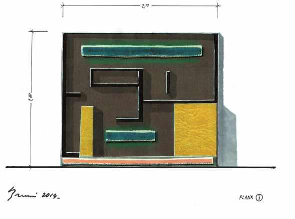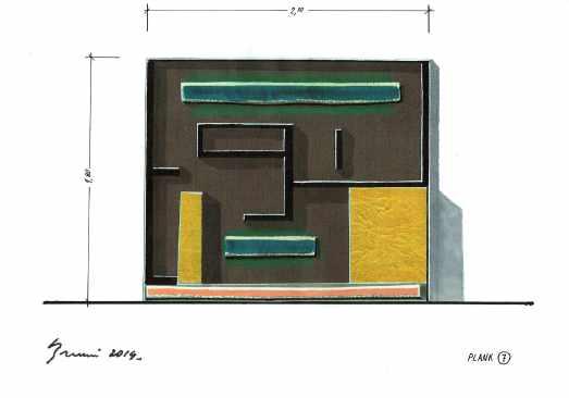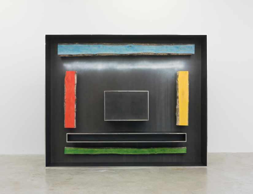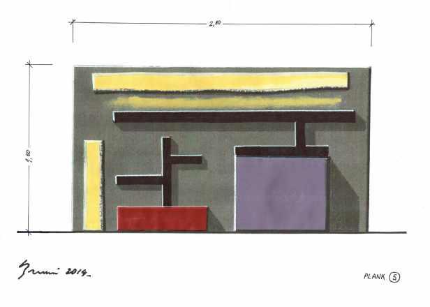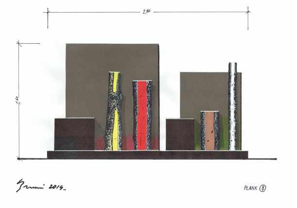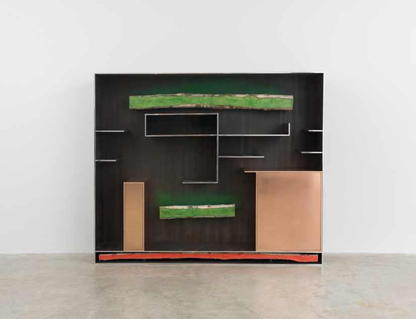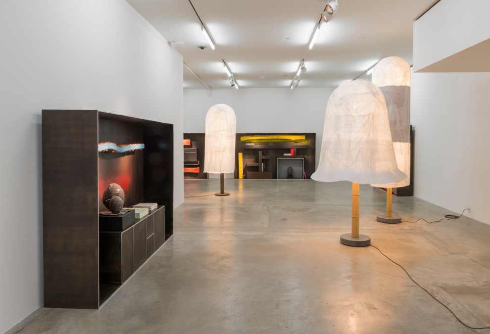 Branzi’s most recent cabinet works, the Plank series (2014-15), again feature natural wood elements, but also sport vibrant color, like sculptural brushstrokes. The works present a physical metaphor for the artistic condition, with the moments of painterly liberty literally “framed” within a rigid order. These works retroactively rescript their own references. After seeing them, you are likely to dwell on the restrictive rectangularity of Abstract Expressionist canvases by Mark Rothko or Franz Kline. At the same time, the Plank series also speaks to 21st century life. They are, after all, for storage; they metaphorically evoke for the containment of individuality within rigid systems, like a personal account in a hard drive. The somewhat intuitive and elusive logic by which each cabinet is arranged, too, speaks to our associative, hyper-textual environment.
