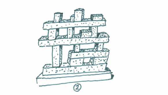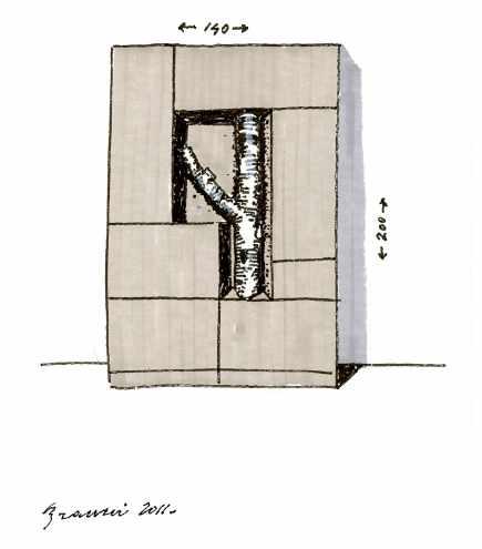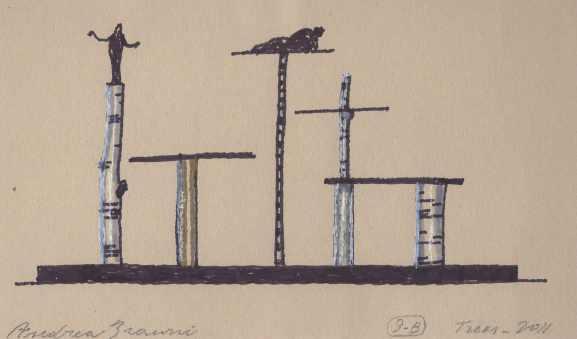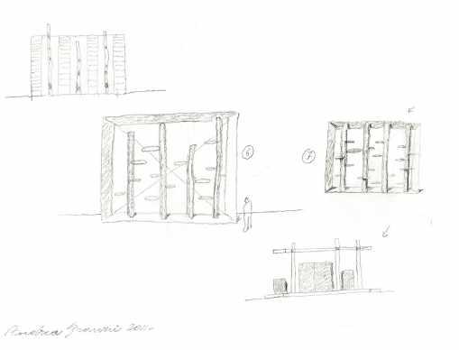 The Grandi Legni do not belong to the art world, because they are freely usable structures whose foundation is entirely domestic. They are autonomous presences, which in their autonomy find their meaning: neither design nor architecture, but in part design and in part architecture. This intermediate dimension is situated in that empty and unexplored space that is the gap between the object and the architecture containing it; an empty space open to the biodiversity of the dead but also of canaries, similar to the Cumaean Sybil’s cave which instead of solving the enigmas of history creates others. —Andrea Branzi