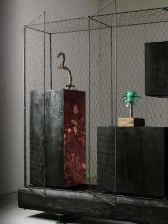 The Grandi Legni originate from the impossibility of distinguishing the post from the present; from the discontinuity of memories and from the new dimension of our mental geography. Contemporary objects are born antique and the antiques belong to our contemporaneity. They are the protective, kindly presences which, like the household gods of ancient Rome, watch over our cold hearth. The Grandi Legni are like archetypal structures on which other languages rest, because one language alone cannot represent everything. As in a crucible where everything is merged together, as if to create a new alloy. I have often thought of Ezra Pound’s “Cantos Pisani”, where the history of ancient Chinese empires is mixed with the Dolce Stil Novo, without pursuing any narrative connection, but succumbing to the power of poetry. Or to the music of Jimi Hendrix, which like a sacred flame burns all and regenerates all.