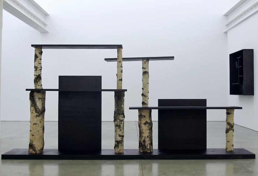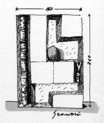 These wooden, catatonic and mysterious installations are not elements of furniture because they presuppose around them an empty, indifferent space, available to any activity. Instead of organising the environment, they empty it. They are situated halfway between architecture and design; by superseding both that “noble feeling of indifference” of architecture towards its own interiors, and by going beyond the object-limits of design.