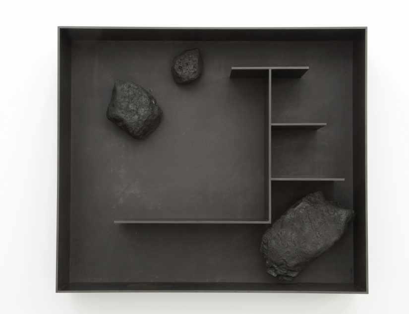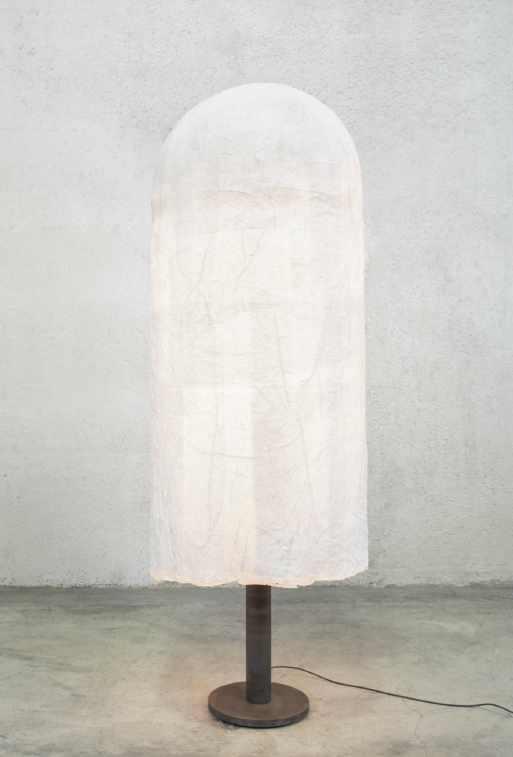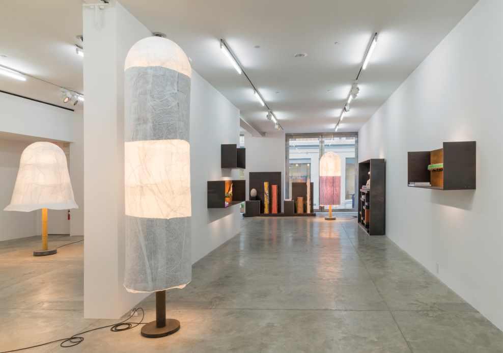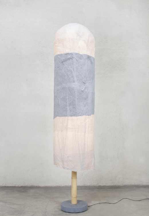 In recent years, Branzi has continued to use archetypes, which he defines as “very simple languages that however express a great universal communicative strength.” In the series Trees & Stones (201011), austere compositions of flat metal seem to conform themselves around natural specimens. In use, as Branzi eloquently puts it, “books and images find their place next to the strange presence of branches and trunks, like in the reality of the world.” Beyond this explicit opposition between industrial and organic form, held in equilibrium, the works have more nuanced conceptual undertones: a compositional reference back to the gridded abstractions of De Stijl (and, by extension, Branzi’s own earlier appropriations of that source); and still more subtly, the way that they complicate the logic of the limited edition, the mechanism by which much contemporary design is fabricated and sold. The introduction of natural elements into a repetitious framework ensures that each work is unique, but only partly so: “a naturally diversified series,” as he puts it. This thoughtfully-calibrated, median position between serial production and organicism can also be seen in Branzi’s lamps employing Japanese rice paper (2014). In Italy, lighting is big business, a mainstay of the design economy. The shades, monumental in scale (and hence implicitly sculptural), secure an autonomous presence by virtue of their artisanal facture and inherent fragility.
