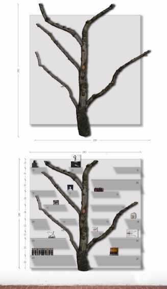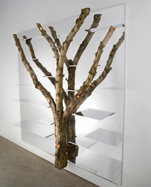 Trees, trunks and branches are part of our ancient lore but also of present-day culture, because in the age of globalization, design seeks to reclaim recognizable ‘anthropological’ platforms. The Trees series consists of simple household objects, in which books, and images find their place next to the strange presence of branches and trunks, like in the reality of the world. —Andrea Branzi