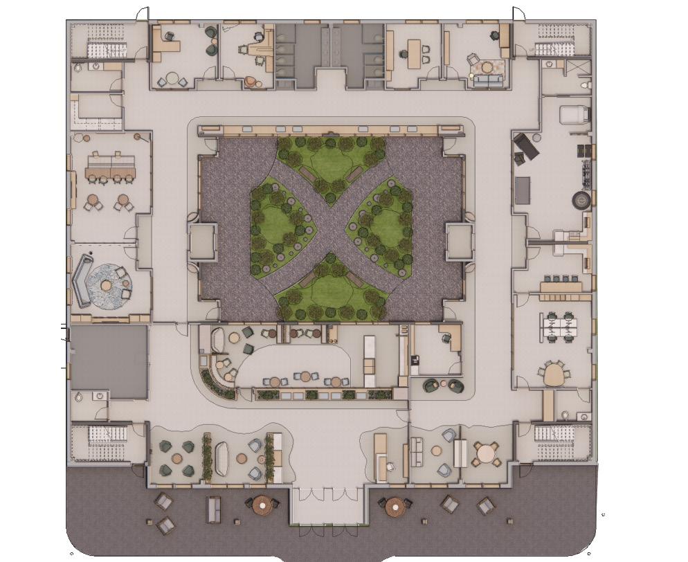 Secondary spaces are designed to support professional functions such as office work and formal meetings with donors, student recruits, and distinguished visitors.