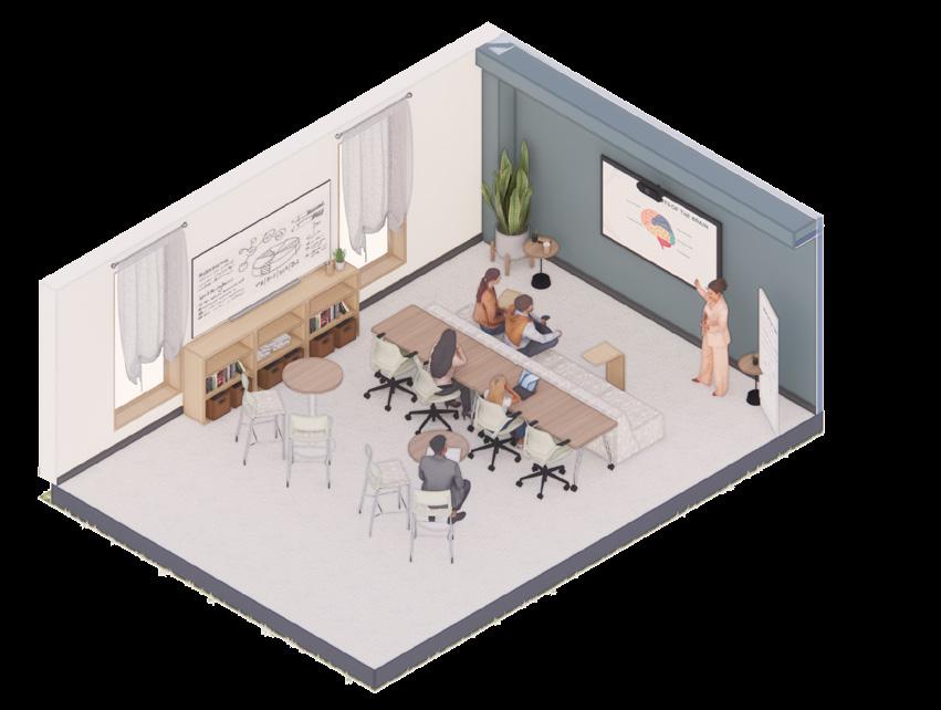 Utilizing evidence-based design strategies, three main categories were integrated into the foundation of the design in order to enhance student mental health and well-being.