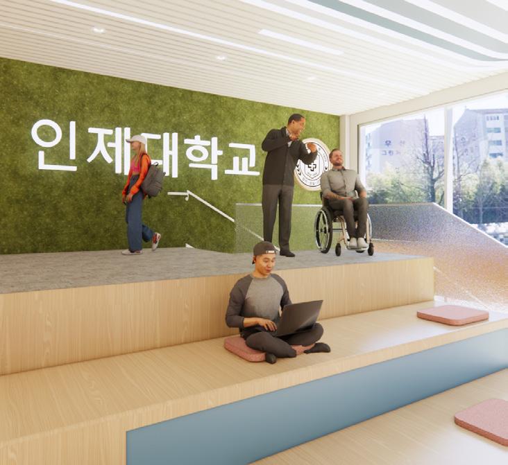 Collaborating with students from Inje University in Gimhae, South Korea, teams explored opportunities to improve campus spaces through evidence-based design solutions. Every decision was rooted in enhancing student well-being and mental health.