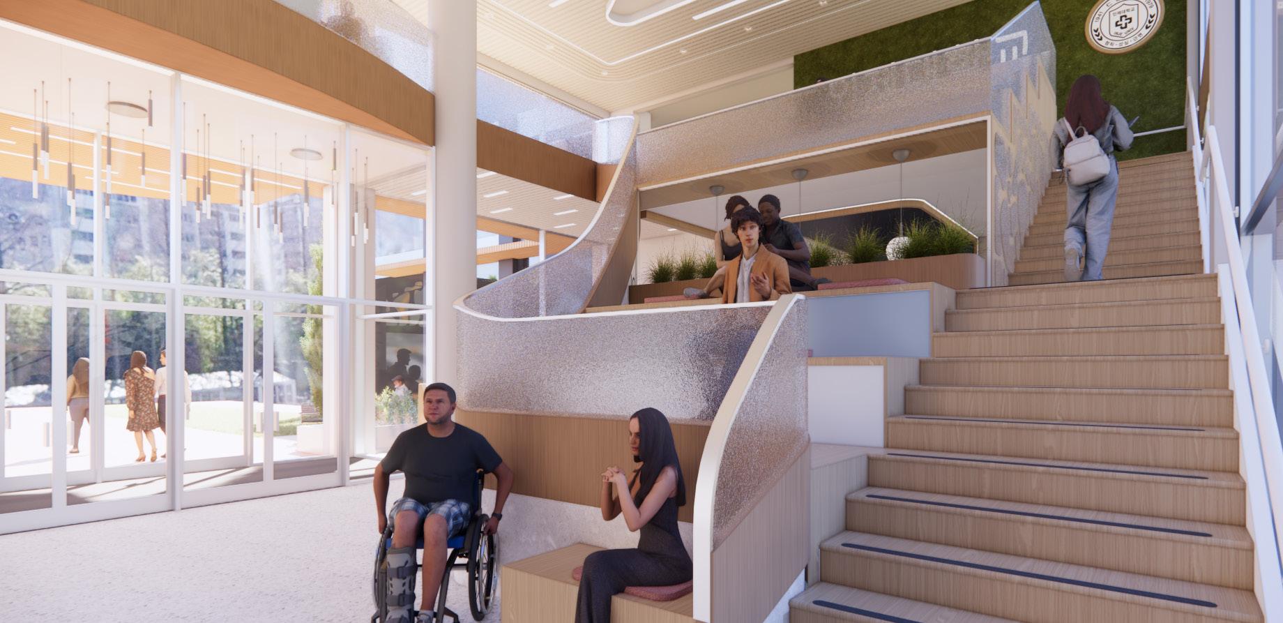 As a central design feature, the learning stair serves as a dynamic hub for collaboration and community. Supporting large and small group gatherings, it plays a key role in enhancing creativity and innovation.