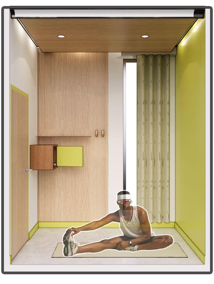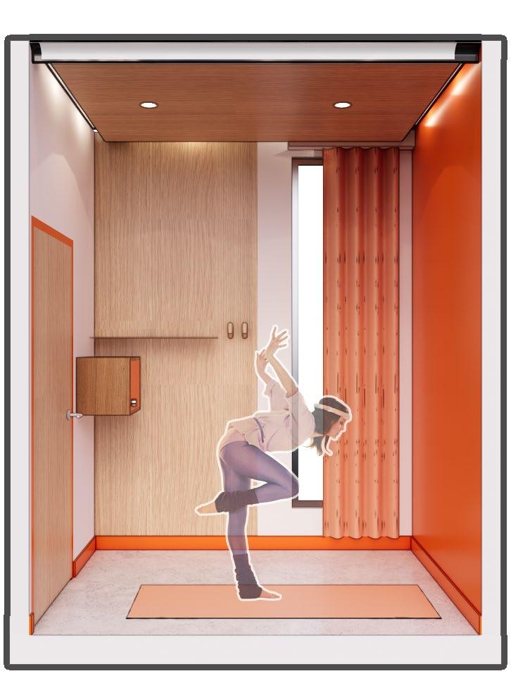 Grounded in h uman-centered and universal design principles, the layout prioritizes intuitive circulation, safety, accessibility, and dignity Warm material palettes, biophilic elements, and sensoryresponsive zones were integrated to suppor t mental and emotional well-being while fostering empowerment, stability, and pathways toward long-term resilience