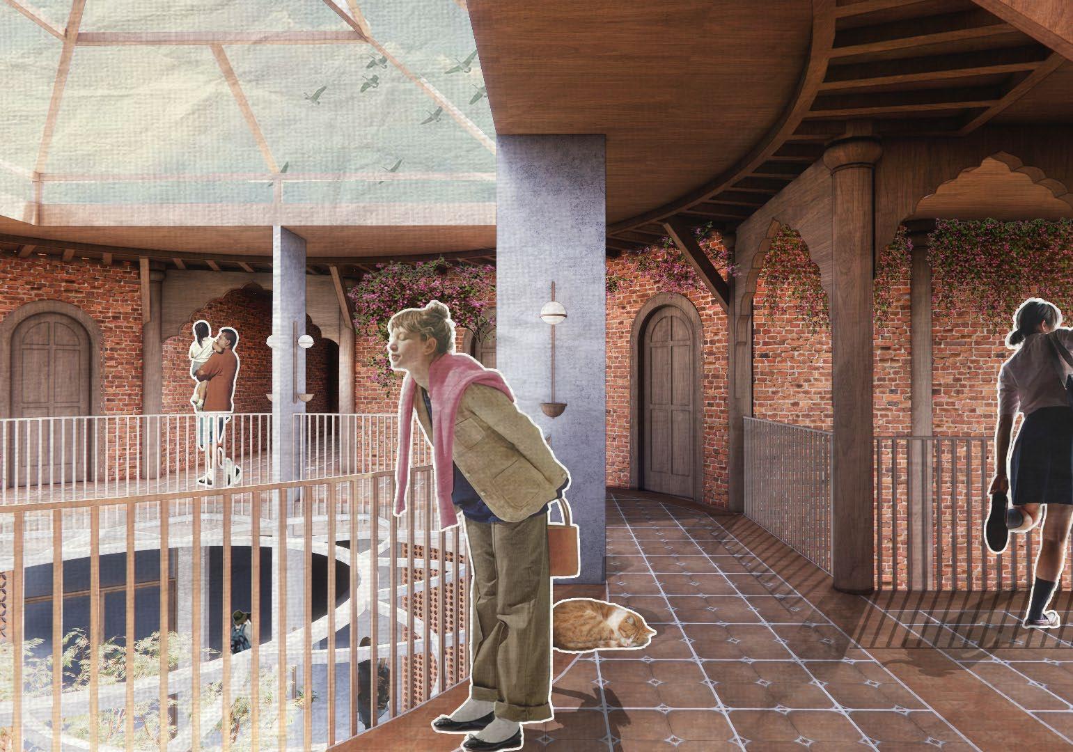 For this project, we could choose any global location, and my par tner and I selected Butwal, Nepal to study a new culture and immerse ourselves in its social and spiritual context. The assignment functioned as a healthcare-adjacent design challenge, with the building locate d near a hospital to ser ve travelers from rural areas seeking medical care.