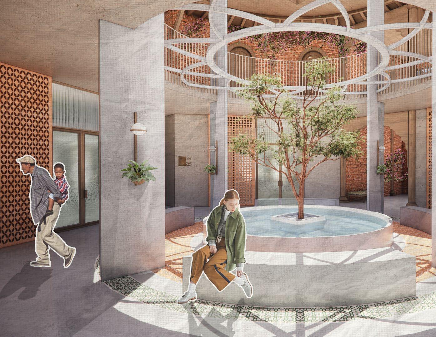 We designed both a hotel f loor and a community f loor, creating spaces for rest, gathering, and suppor t Because the project required a religious or contemplative space, we developed an inclusive multi-faith room inspired by mandala geometry, emphasizing balance, healing, and cultural sensitivity The overall design blends hospita lity, community programming, and wellnessfocused environments while honoring Nepal’s rich traditions.