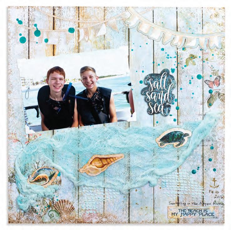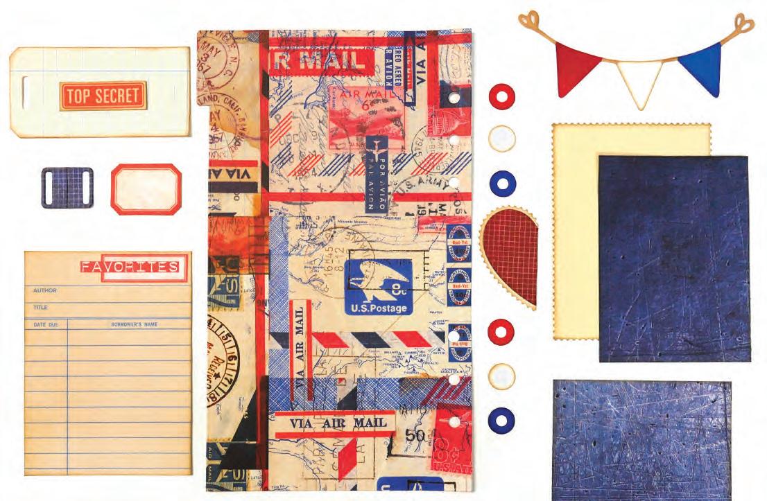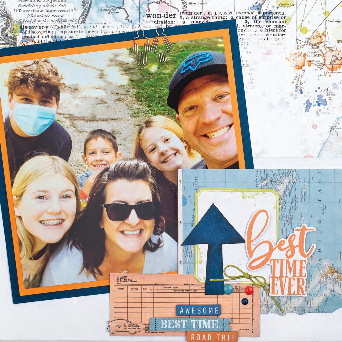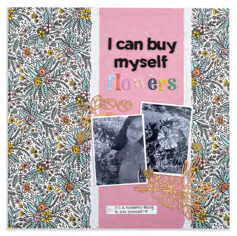 Tammy Hawes, Cranbrook, British Columbia SUPPLIES: Simple Stories patterned paper, stickers, ephemera and chipboard, machine stitching.