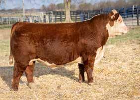 EBS is proud to announce our new Herd Sire, WLKR JH Mainstay 722 7229 0130. A son of Final Test 722, this young sire is long-sided, deep middled, structurally sound and has an outstanding set of EPD’s. Owned with Walker Polled Herefords, we look forward to his first calf crop next spring. Other herd sires in use at EBS: SHF Moonlight X51 Z169, EBS AF 167F Trusted 88F Seeresultsofourbreeding programatconsignmentsalesorcomebythefarm foravisit. EBS is a Golden Hereford Breeder