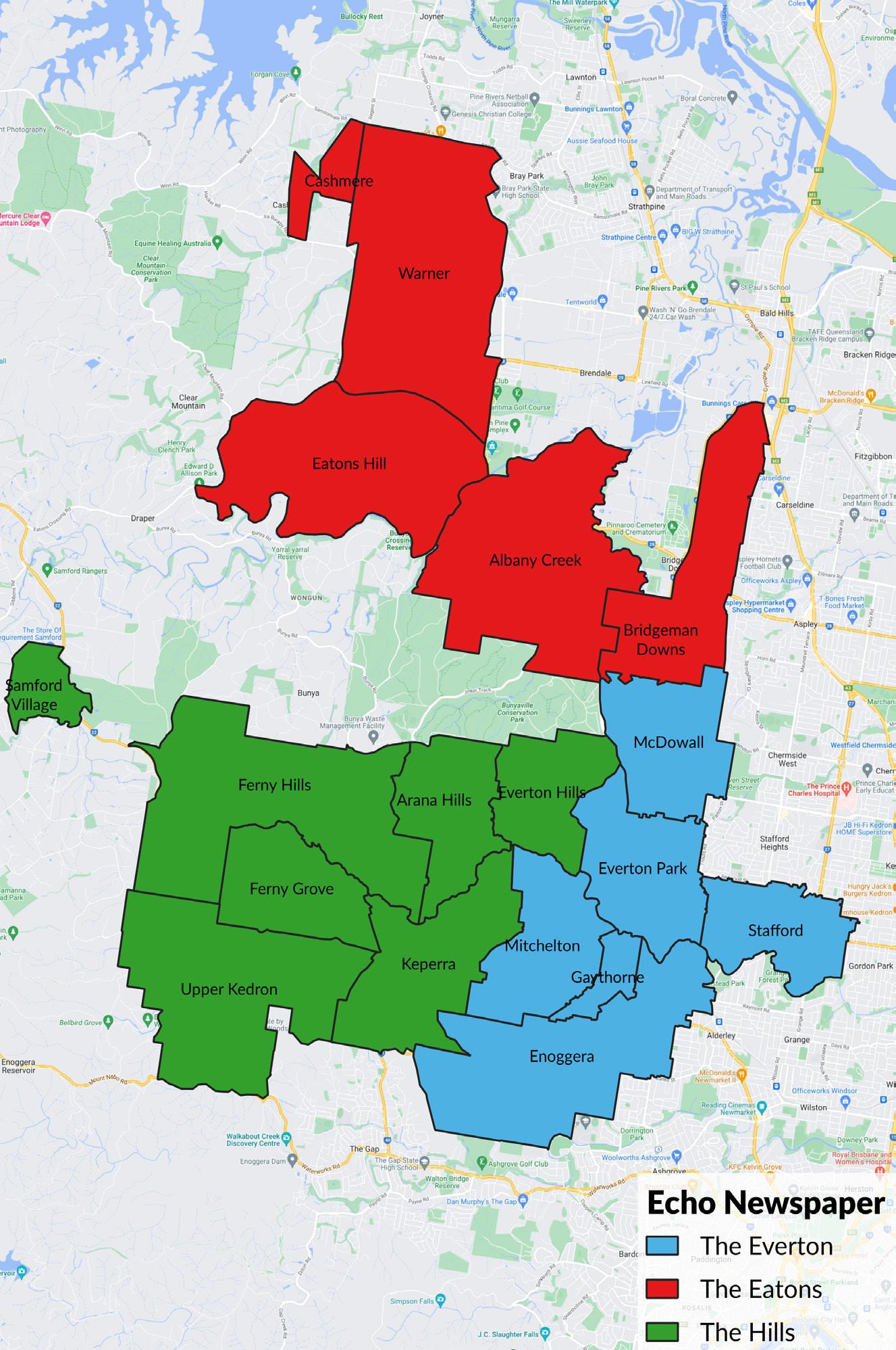 The Local Listings Directory is inserted into all 3 of our community magazines - The Hills Echo, The Everton Echo and The Eatons Echo. Collectively, we print 43,500 copies/ month that are distributed via direct letterbox distribution and magazine stand placement to the suburbs across north west Brisbane that are highlighted on the map below. There are also 3 advertisement sizes to choose from. Examples are on the right hand side of the page.