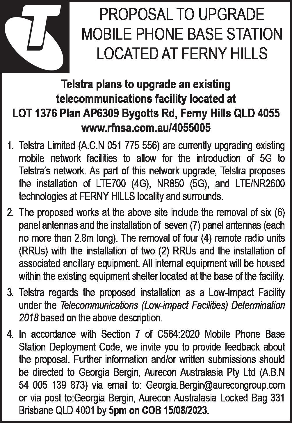 A works notification will be provided before construction commences advising of exact dates. For more information visit www.moretonbay.qld.gov.au/Services/Projects/Roads/ Arana-Hills-Intersection-Upgrade