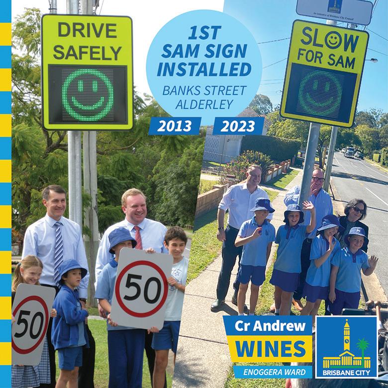 In May, the Lord Mayor and I celebrated Speed Awareness Monitors (SAMs) with Newmarket State School. The first sign was installed a decade ago to encourage motorists to reduce speeds. As a motorist approaches the sign, their speed is detected by a radar, and a smiley face will appear if they're driving at or below the speed limit.