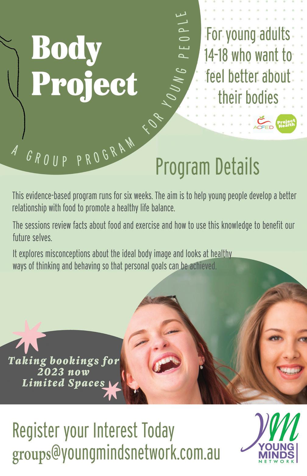 For more information on body image, head to the Young Minds blog (https://youngmindsnetwork.com.au/bodyimage-an-explanation-of-risks-underlying-factors-andpreventative-management/ ) and get in touch to discuss available options.