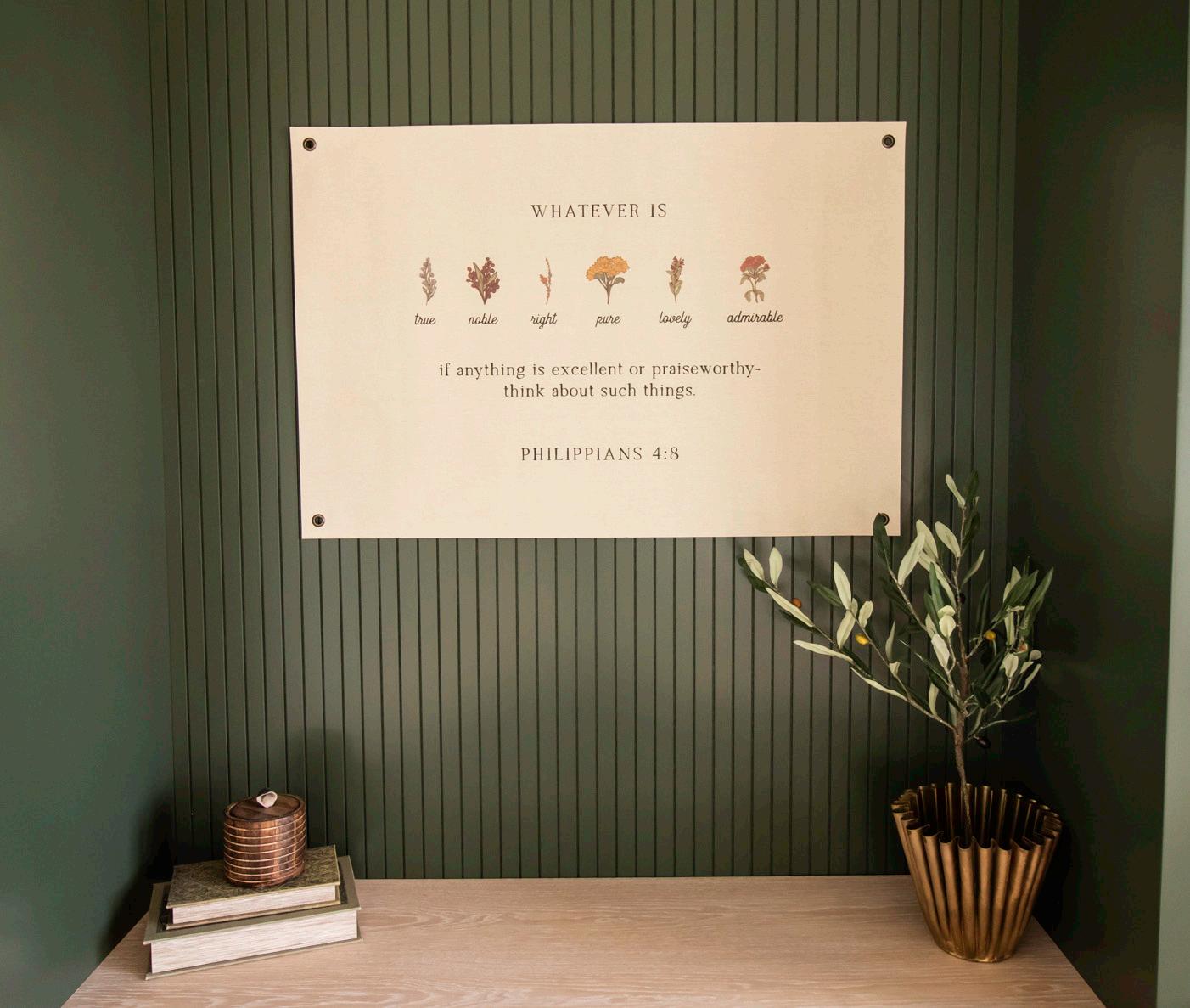 Can’t we all use this reminder to keep our focus on the positive things around us? Paired with a simple, vintage botanical, each thought-worthy descriptor can soon be memorized by each member of the household as you glance at this piece each day.