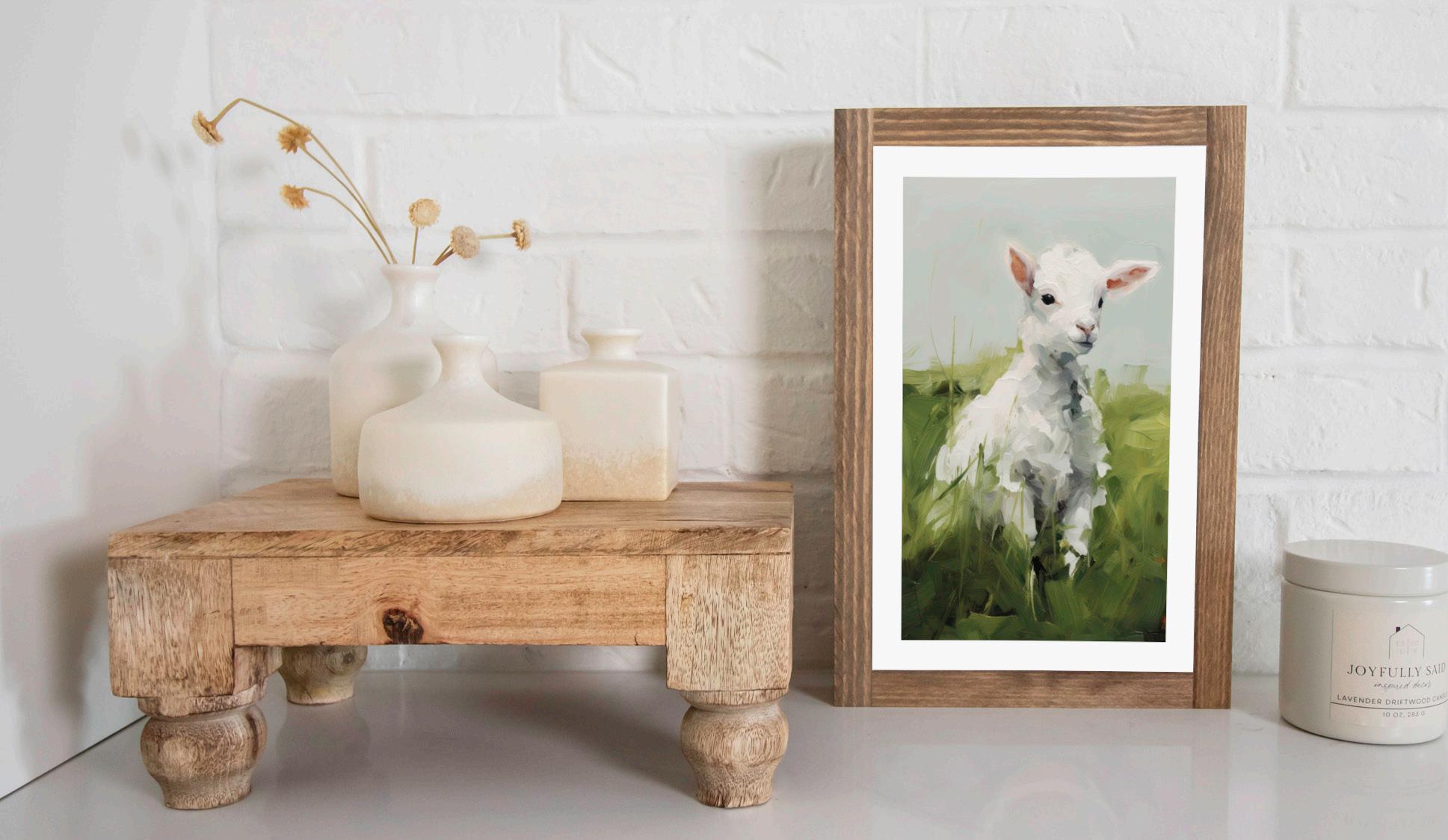 It’s impossible not to smile at this sweet lamb, which also serves as an icon of the Christian faith. This vintage art piece is sure to be a new favorite! Comes with a soft white matted look.