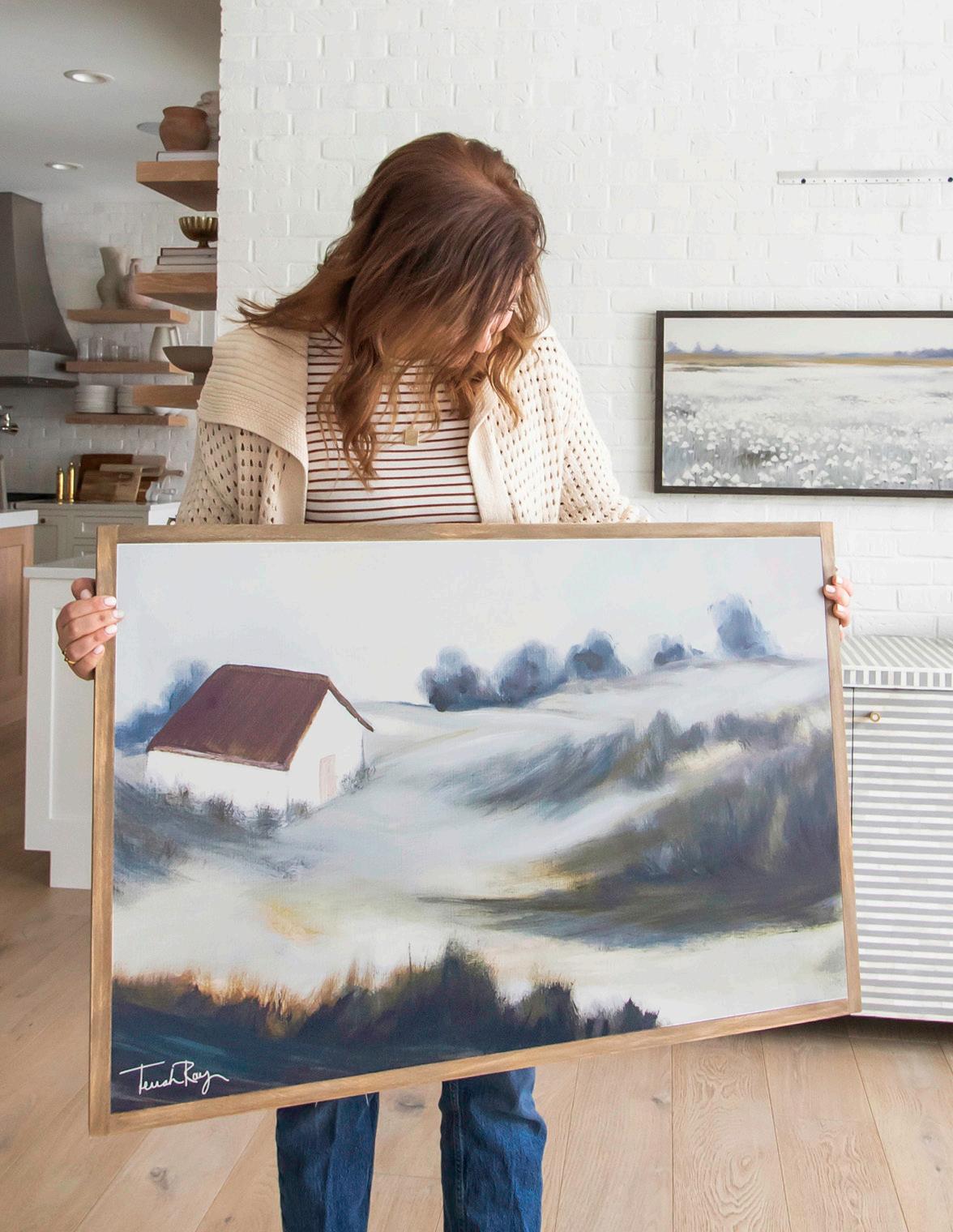 Terrah Ray is a fine artist from a small town in Kentucky. As a mother, homemaker, and working artist she lives a slow and simple life. Finding inspiration from nature, the smell of fresh cut flowers, and the beauty of an open field. Through the use of warm, earth-inspired tones, gentle brushstrokes, and soft textures, the artist’s work captures the essence of nature and brings it into your living space. Serving as gentle reminder to slow down and offering you a soft place to land, even if just for a moment. Bringing peace and comfort to both your heart and home.