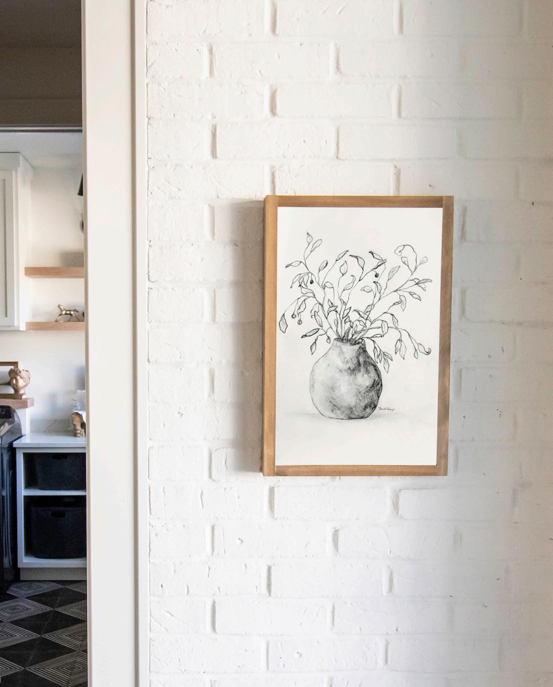 A monochromatic charcoal sketch by artist Terrah Ray, Olive + Terracotta was inspired by slow evenings, the beauty found in imperfections, and the quietness of nature.