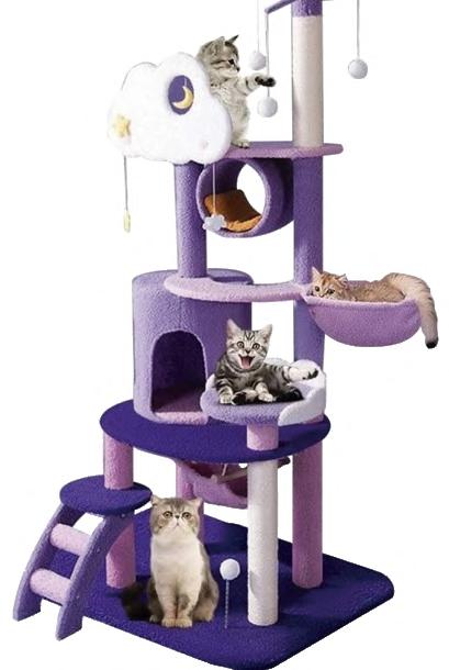 Castillo con camas y rascador para gatos color morado, 1.2 metros de alto