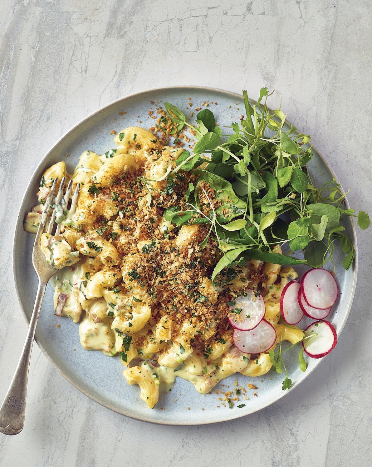 Tõsta hautis ahjuvormi, kata püreekihiga, tee kahvliga muster. Küpseta 200 °C juures 25–30 minutit, kuni pealt kuldpruun.