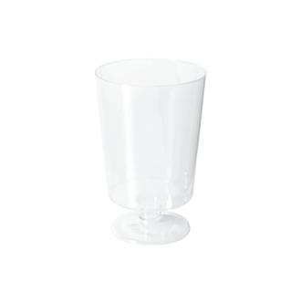Korkeiden lasimaljojen läpi kuultavat kukkaset viimeistelevät kattauksen.
