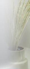 Keraaminen Nuppu-maljakko on saanut rinnalleen kirkkaan lasimaljakon, jota koristaa Aarikan ikoniset puuhelmet. Kirsi poimi Lahden Kärkkäisen sisustusosastolta Nuppu-lasimaljakkoon eri tummuusasteisia, rantahietikolla kasvavia heiniä muistuttavia keino-oksia.