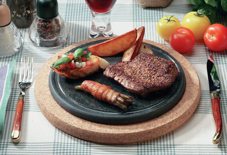 Hukka Paistokkaan päällä kukin ruokailija voi paistaa pihvin oman kypsyysmakunsa mukaiseksi.