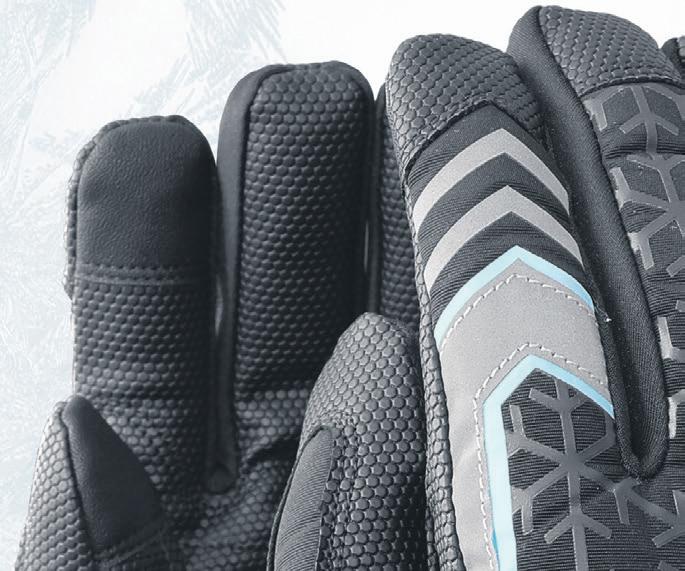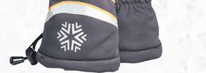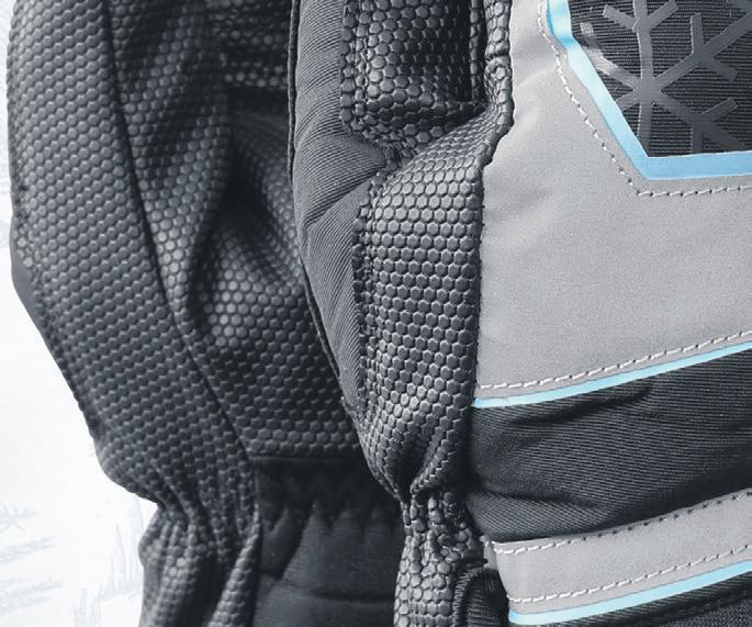 Kerroksellisuus toimii myös käsineissä. Kestävän päällysmateriaalin alla oleva Thinsulate-vuori on erittäin ohut, mutta sillä on erittäin hyvät eristysominaisuudet, joten kädet pysyvät lämpiminä. Vedenpitävä kalvo käsineissä suojaa kosteudelta ja sateelta.