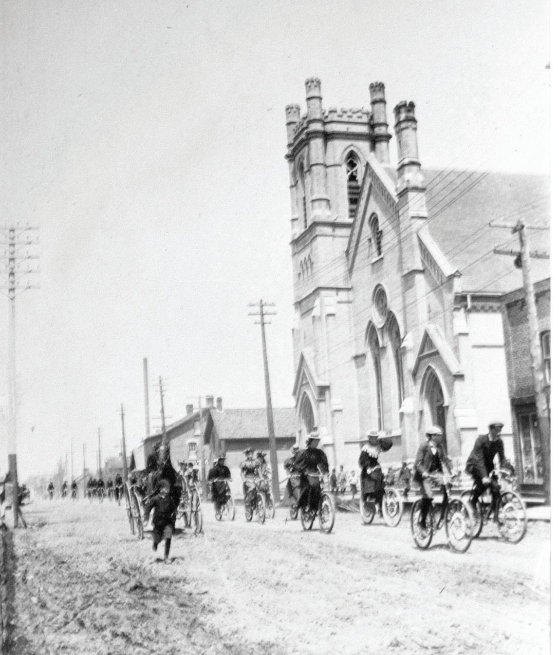 Biking by the Church (circa 1910) #2023-004_200110