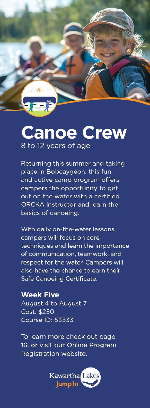 Returning this summer, this fun and active camp program offers campers the opportunity to get out on the water with a certified ORCKA instructor and learn the basics of canoeing.