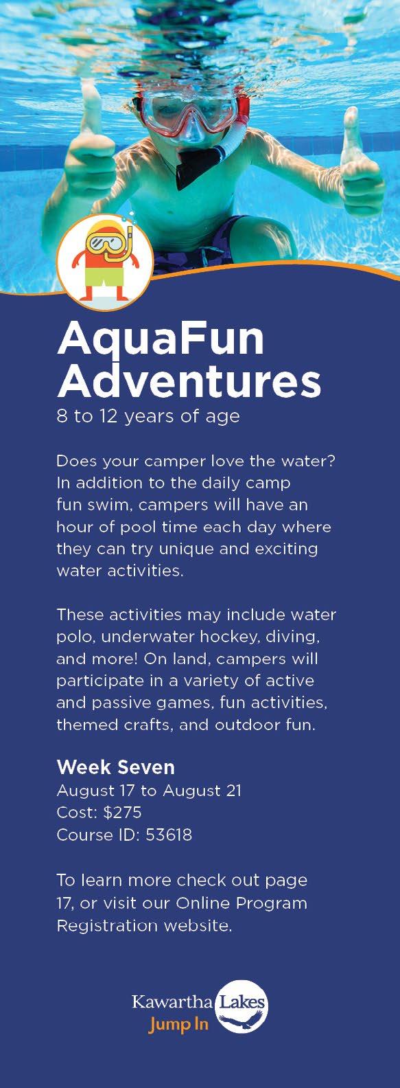 Please note: to be eligible for this program, campers must have completed Kawartha Swim’s Swimmer 4 level or equivalent. This eligibility requirement is in place to ensure all campers are able to fully participate in all the activities!