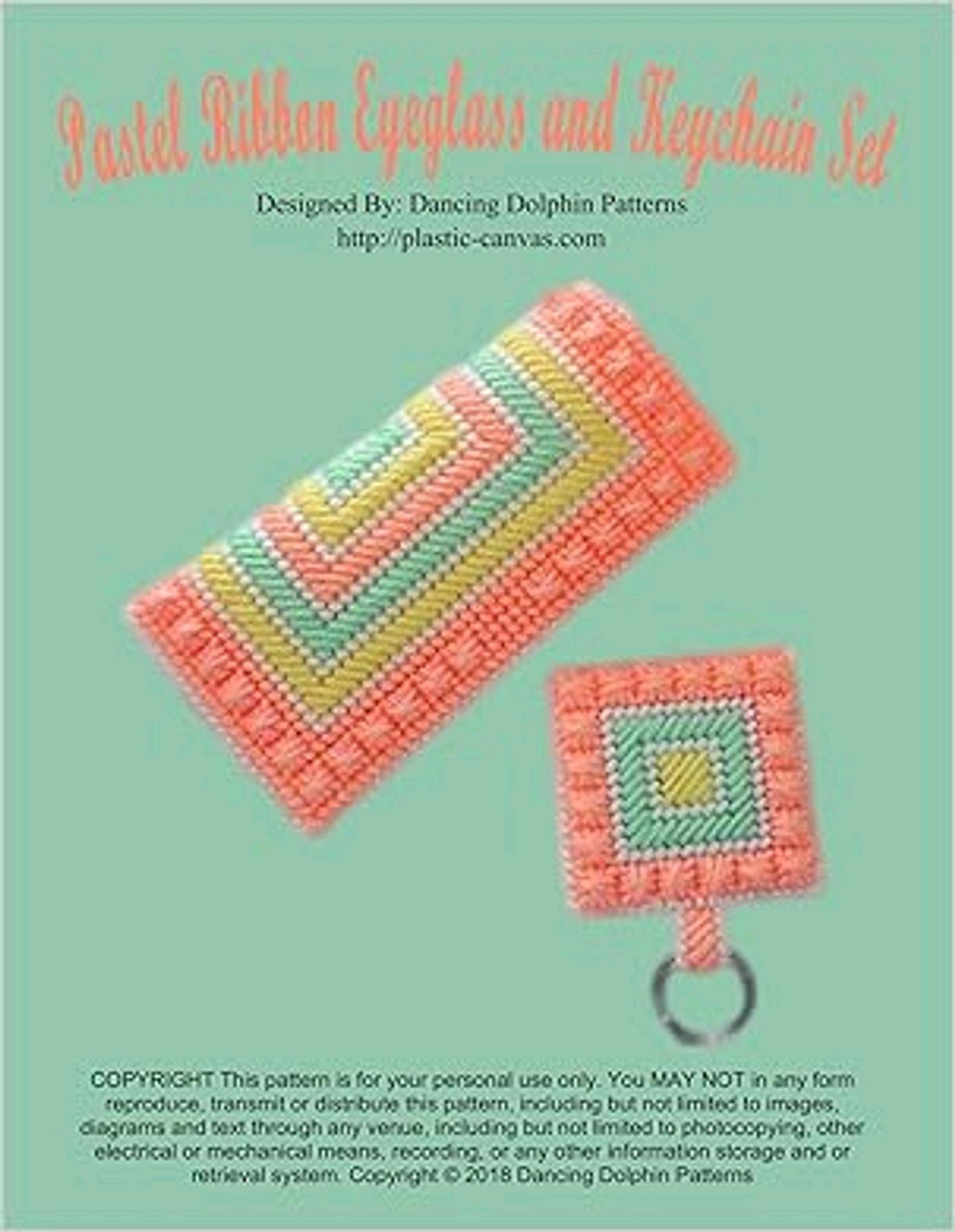 Get PDF file of 'Pastel Ribbon Eyeglass and Keychain Set: Plastic Canvas Pattern' by Dancing Dolphin Patterns.