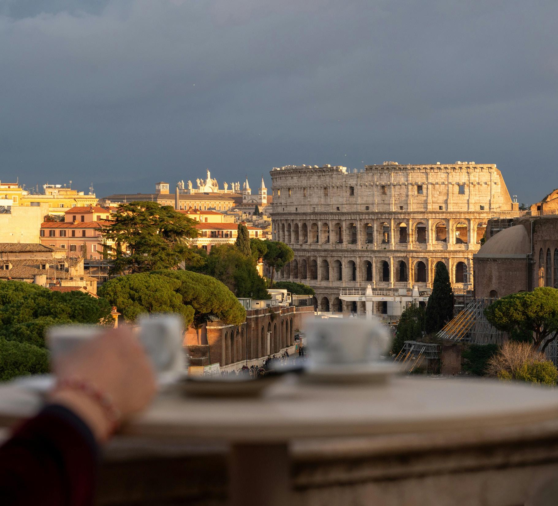 Drink your coffee, close your eyes, and picture a balcony with the Colosseum.