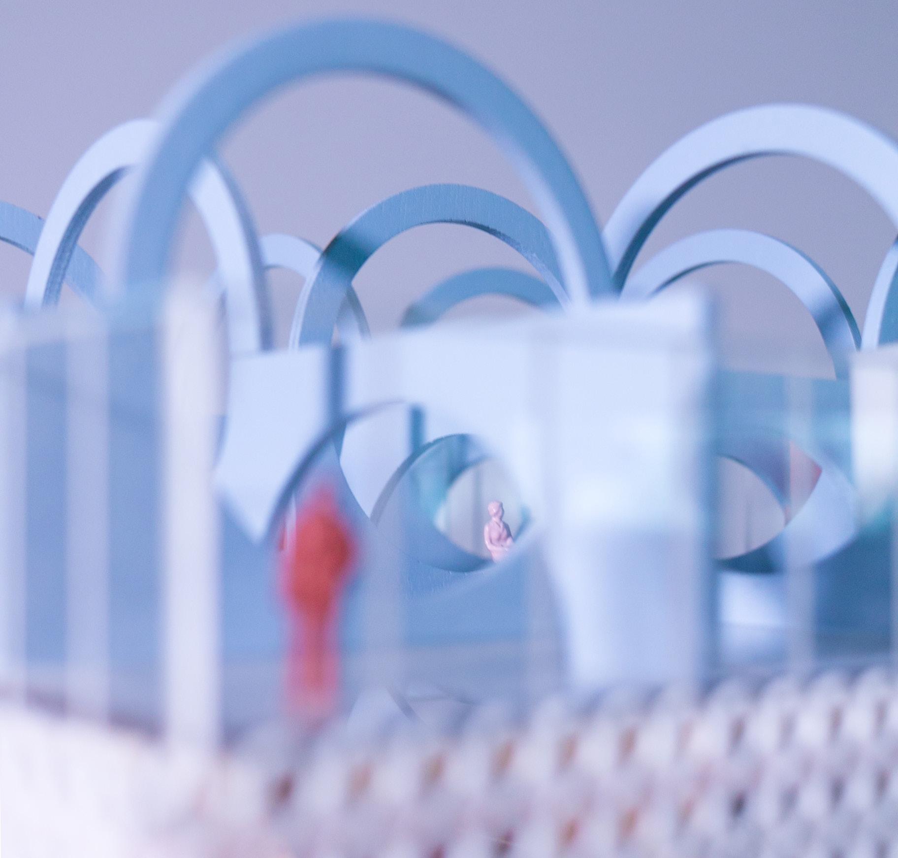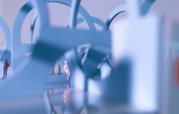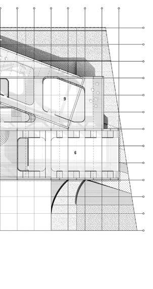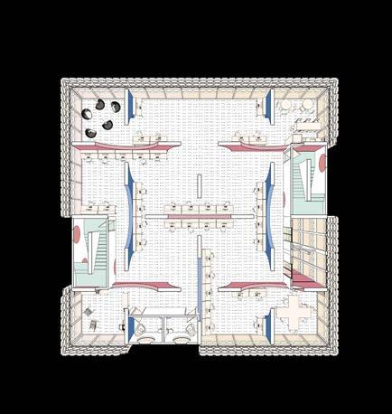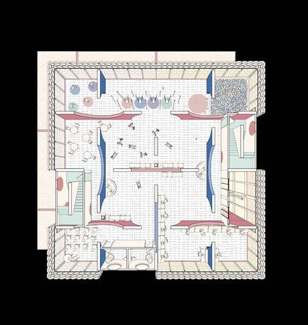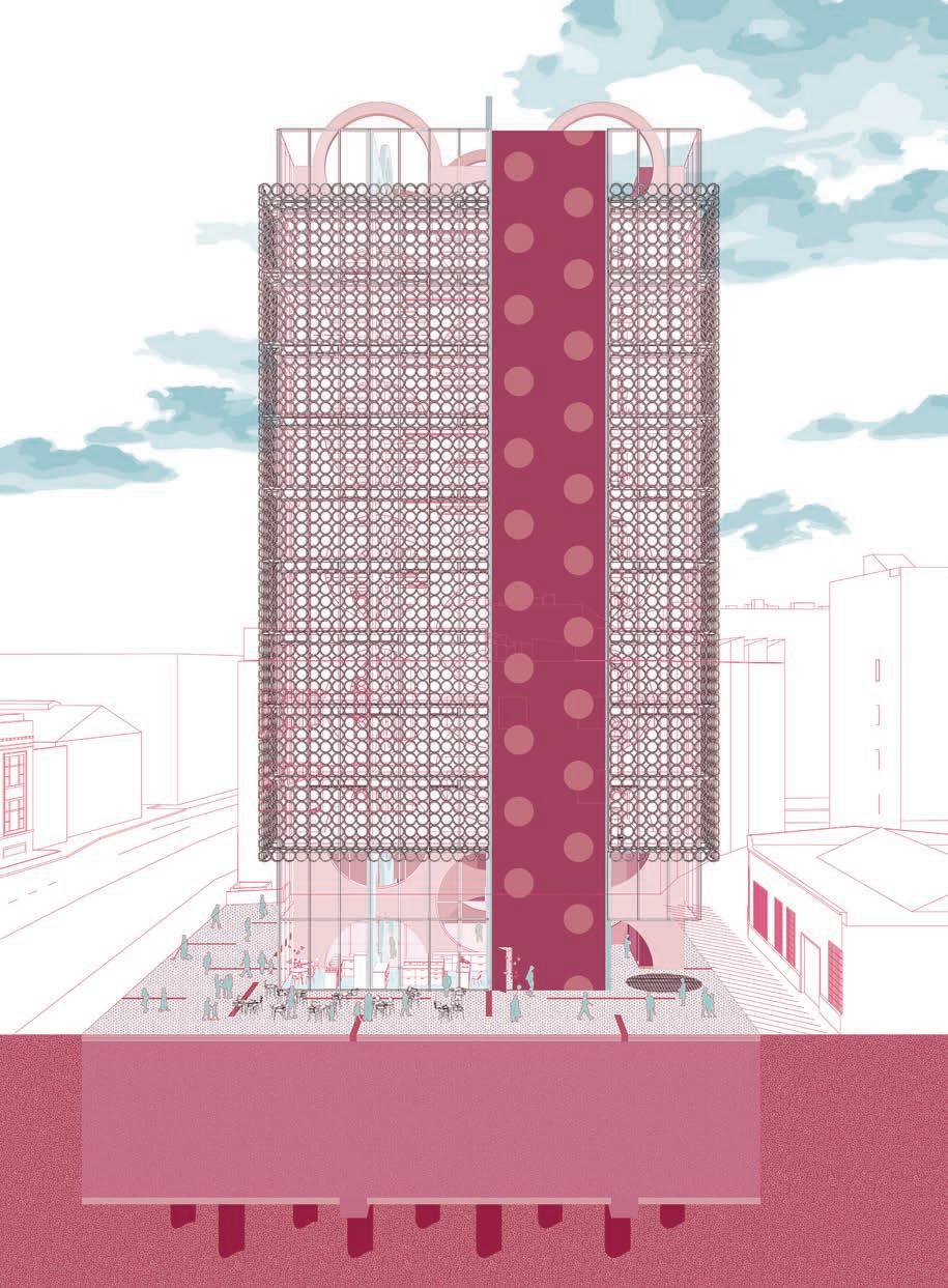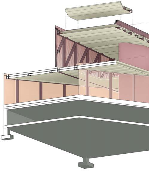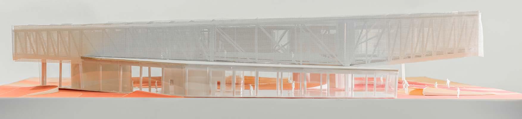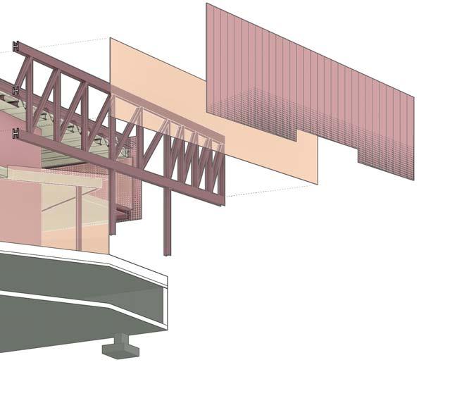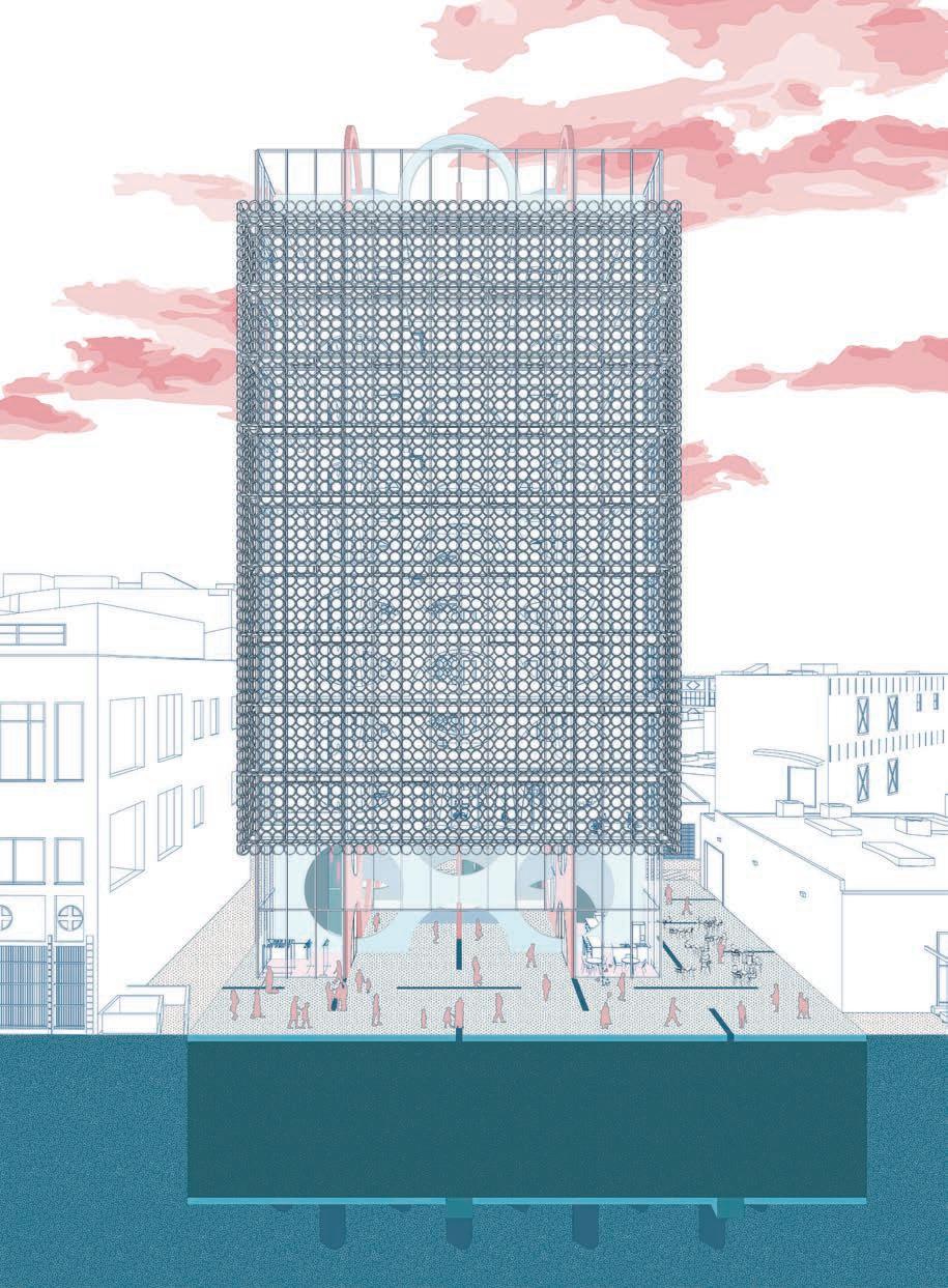 The location of the building was in the Arts District, an upand-coming area at the time this project was proposed. I wanted to create a space of gathering, one without the “fortress vernacular” commonly seen in Los Angeles. The ground floor was an open floor plan, with a single facade of the truss bar that sat on the floor. The rest of the building was meant to give the illusion of floating above the ground. This was echoed in the facade system, as the perforated facade glowed at night but appeared as a mass during the day. The facade provided protection for the art and architecture presented in the space. To further provide lighting, skylights were introduced with curves and thus gave a soft and diluted amount of sunlight. The overall project was received as innovating the truss system, and further was selected to be presented to the NAAB accreditation board on behalf of USC SoA.
