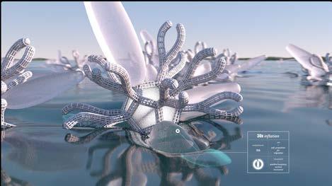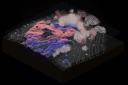 In the 'unlimited solution’ of the ocean, salt is in superabundance, becoming the site for HALOKINESIS. By designing and embedding intelligent systems, our goal was to create a system that receives environmental data to determine agent behavioral patterns, adapting to external forces from the continuous and substantial environmental variability. Following the information flow, a structure would be generated by the swarming behavior that constantly interacts with local organisms and terrain.